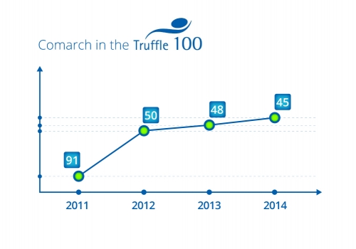 In the Truffle 100 ranking for the year 2014 Comarch jumped from 48 to 45, and in the previous year from 50 to 48. By comparison, in 2011 Comarch appeared in this ranking for the first time and was the 91st. It is worth noting that Comarch is one of the only two Polish companies to have ever been included in this ranking.